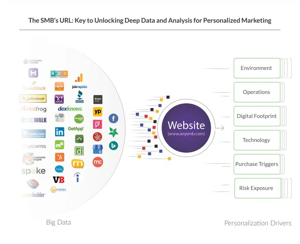 By knowing the SMB’s website, a marketer can uncover vast information about the SMB that is essential for personalizing marketing messages.