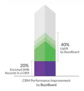 All too often, the company operating the CRM bears much of the blame for the poor quality of data. They are too willing to go directly to marketing and sales with little more than contact information. They don’t want to spend the time or budget to enrich their SMB records to enable truly personalized marketing. BuzzBoard’s proprietary data sources and analytics are able to identify and match SMB URLs with other data elements in a marketer’s CRM. Our experience is that we can increase the number of complete, enriched records by 2x to 3x. So, if the percentage of enriched records in a CRM is currently 20% of total records (which is what our recent analysis reveals is typical), we can increase that to 40% to 60% of total records.