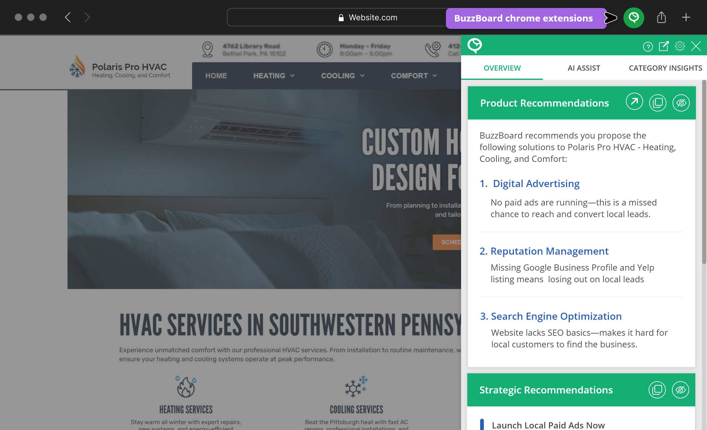 With one click, unlock a full view of any SMB: their digital presence, competitors, recent trends, and market opportunity. No switching tabs. No spreadsheets.